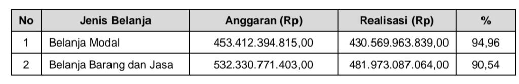 MUSI RAWAS – Pemkab Musi Rawas pada Tahun 2022 menganggarkan dan merealisasikan Belanja Modal dan Belanja Barang Jasa masing-masing sebagai berikut: