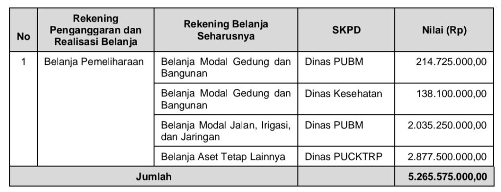SKPD Sebesar Rp5.265.575.000,00 Tidak Tepat
